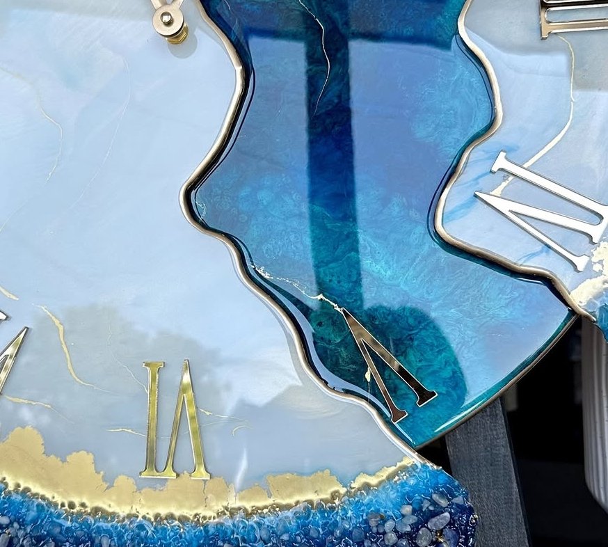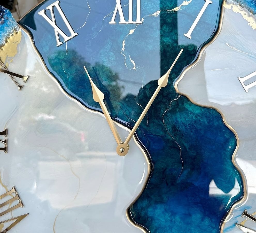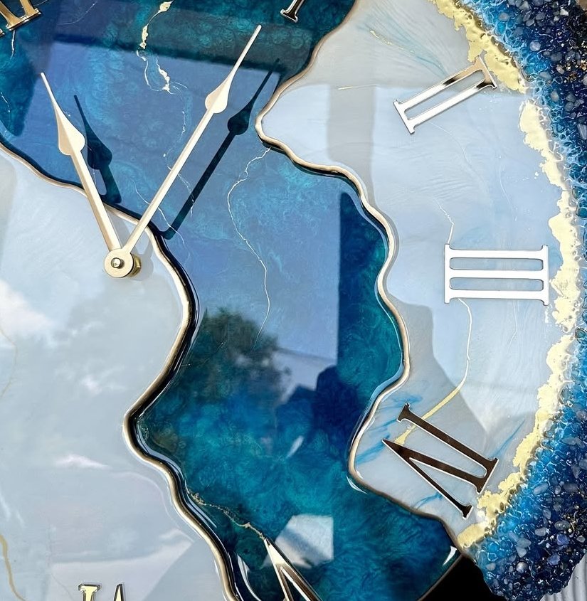 The Blue Horizon Shatter Resin Wall Clock is an artistic masterpiece that captures the essence of elegance and creativity. Its fractured aqua-blue resin design, accented with subtle horizon tones, creates a mesmerizing visual effect that turns any wall into a statement of luxury. Perfect for modern interiors, this handcrafted piece blends art, style, and precision timekeeping.